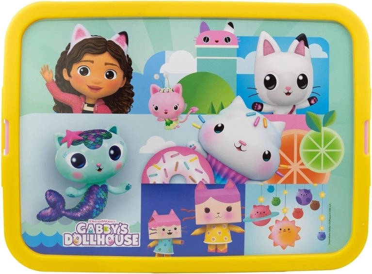 Uroczy i praktyczny pojemnik do przechowywania o pojemności 23 l z motywem Gabinin Czarodziejski Domek pomaga utrzymać porządek w pokoju dziecięcym i w domu. Ma wytrzymałe plastikowe wykonanie, zamykane, zdejmowane wieko i jest idealny na zabawki, klocki i drobiazgi.