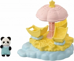 W zestawie znajduje się urocza figurka małej pandy z ruchomymi kończynami, którą można łatwo posadzić na siedzeniach lub ustawić w różnych pozach. Kompaktowe wymiary karuzeli (ok. 15 × 14 × 12 cm) świetnie pasują do każdego dziecięcego pokoju i do innych zestawów Sylvanian Families.