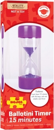 Duża klepsydra Bigjigs Toys to doskonała pomoc w określaniu czasu trwania czynności takich jak nauka czy sprzątanie. Wewnętrzny pojemnik na piasek wykonany jest ze szkła i chroniony jest solidną plastikową obudową. Spełnia obecne europejskie normy bezpieczeństwa.