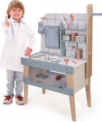 - Kompletna klinika w domu – stół do badań z półkami, karty pacjenta, tablica okulistyczna, karty leków i inne dodatki.