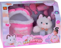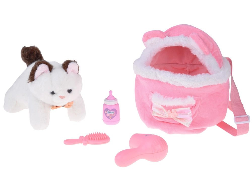 W zestawie znajduje się pluszowy plecaczek z uszkami i mięciutką lamówką, który ma regulowane szelki i małą kieszonkę na akcesoria. W komplecie nie brakuje butelki do karmienia, grzebienia do czesania oraz zabawkowej suszarki do stylizacji futerka. Zestaw rozwija empatię, odpowiedzialność i wyobraźnię dzieci – świetny prezent dla wszystkich miłośników kociąt.
