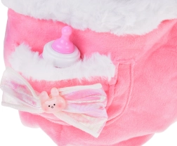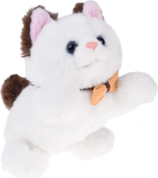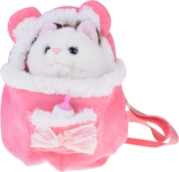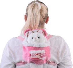 Ten przytulny pluszowy kociak w różowym plecaczku jest idealny do dziecięcej zabawy w opiekę nad domowymi pupilami. Dzięki ruchomym łapkom dziecko łatwo posadzi, położy lub ustawi kociaka, a efekt bicia serca w brzuszku dodaje zabawie czułości i autentyczności. Miękkie futerko, haftowane detale pyszczka i urocza kokardka sprawiają, że to świetny towarzysz do przytulania i podróżowania.