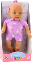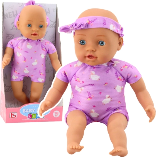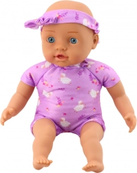 Urocza lalka niemowlęca o wysokości 31 cm ucieszy każde dziecko, które lubi opiekę i zabawę w rodzinę. Ma realistyczne rysy twarzy, duże niebieskie oczy oraz miękkie ciałko w przyjemnym fioletowym body z kwiatowym motywem. Jest lekka do trzymania, bezpieczna i doskonała do tulenia oraz podróży.