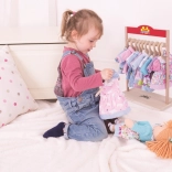Te piękne niebieskie prążkowane sukienki są idealne dla lalek o wielkości 28 cm. W zestawie znajduje się także opaska oraz wieszak, który ułatwia uporządkowanie ubrań, gdy nie są używane do zabawy.