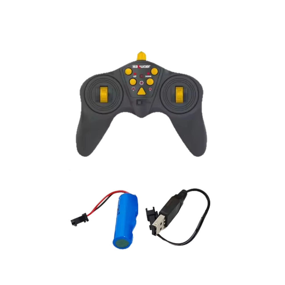 W zestawie znajdziesz dwudrążkowy kontroler, akumulator 3,7 V do ładowania oraz kabel USB – wystarczy włożyć baterie AA do kontrolera i ruszać w drogę.