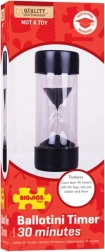 Duża klepsydra Bigjigs Toys oferuje efektywny sposób na zrozumienie upływu czasu przez dzieci i dorosłych. Klepsydra nie jest zaprojektowana do dokładnego pomiaru sekund, ale dostarcza przybliżony okres trzydziestu minut.