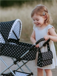 Retro wózek dla lalek 2w1 New Baby Natálka – biało‑czarna kropka