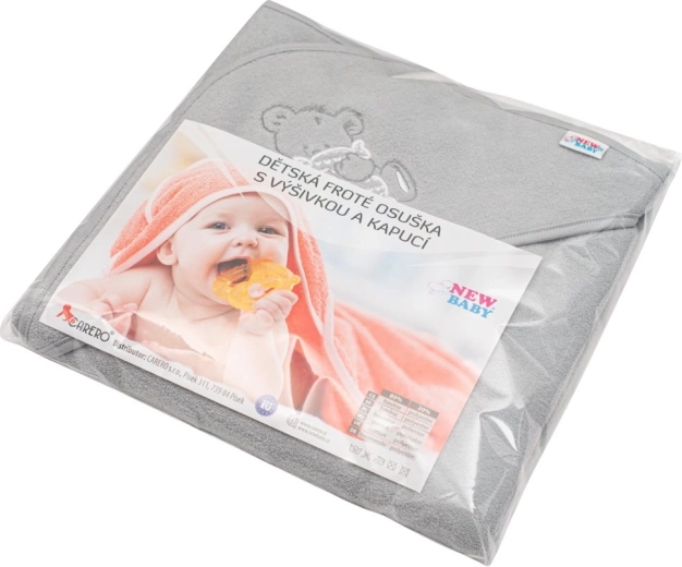 Spraw, aby każda kąpiel była przyjemnym rytuałem. Dziecięcy ręcznik frotte z kapturem oferuje doskonałą chłonność, delikatność dla wrażliwej skóry i wygodę dzięki praktycznym wymiarom 80 × 80 cm. Szary kolor jest uniwersalny i łatwo go dopasować do pozostałej wyprawki.