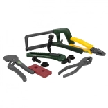 Ten kolorowy zestaw zawiera wybór podstawowych narzędzi do dziecięcego majsterkowania – od szczypiec i piłki po śruby i nakrętki. Wszystko wykonane jest z lekkiego i wytrzymałego plastiku, przyjemnego w dotyku, który umożliwia bezpieczną zabawę bez ostrych krawędzi.