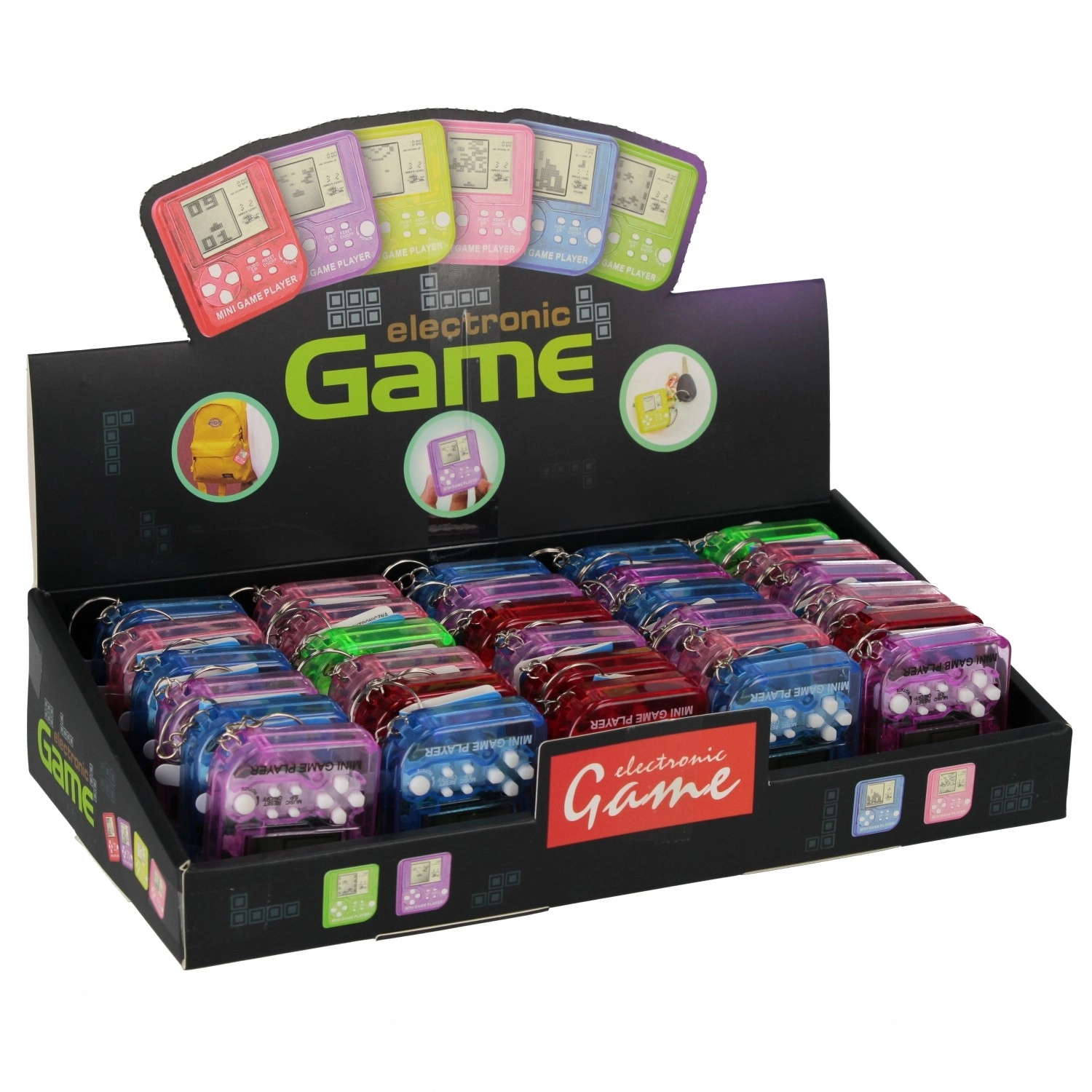 Zabawa do kieszeni zawsze i wszędzie! Ta mini elektroniczna gra na klucze oferuje klasyczne gry w stylu Tetris, wiele poziomów trudności oraz proste sterowanie przyciskami. Dzięki kompaktowym wymiarom łatwo mieści się w kieszeni i na pęku kluczy, jest lekka, wytrzymała i idealna w podróży. Dostarczana w miksie kolorów. Odpowiednia dla dzieci od 3 lat.