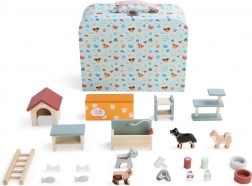 W zestawie znajdują się pieski różnych ras, miski, kości, rybki, zabawki, buda, legowiska, „jedzenie” oraz inne miniaturowe akcesoria. Dzięki kompaktowym wymiarom walizeczka jest łatwa do przenoszenia i świetnie sprawdza się na wycieczkach, wizytach i wakacjach.