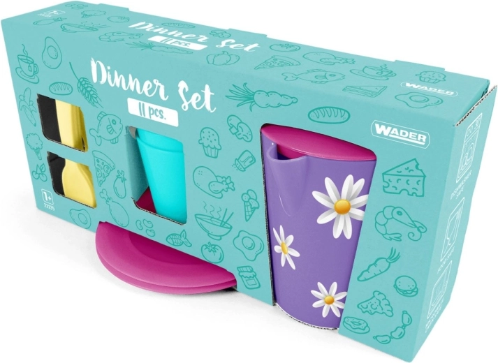 Mały zestaw obiadowy Party Time jest idealny dla małych kucharek i kucharzy, którzy kochają gotowanie i organizowanie dziecięcych przyjęć. Zestaw zawiera dzbanuszek z grafiką IML z uroczymi stokrotkami, 2 filiżanki, 2 talerzyki, 2 widelczyki, 2 nożyki i 2 łyżeczki – razem 11 elementów. Dzięki eleganckiemu opakowaniu zestaw świetnie sprawdzi się także jako prezent.