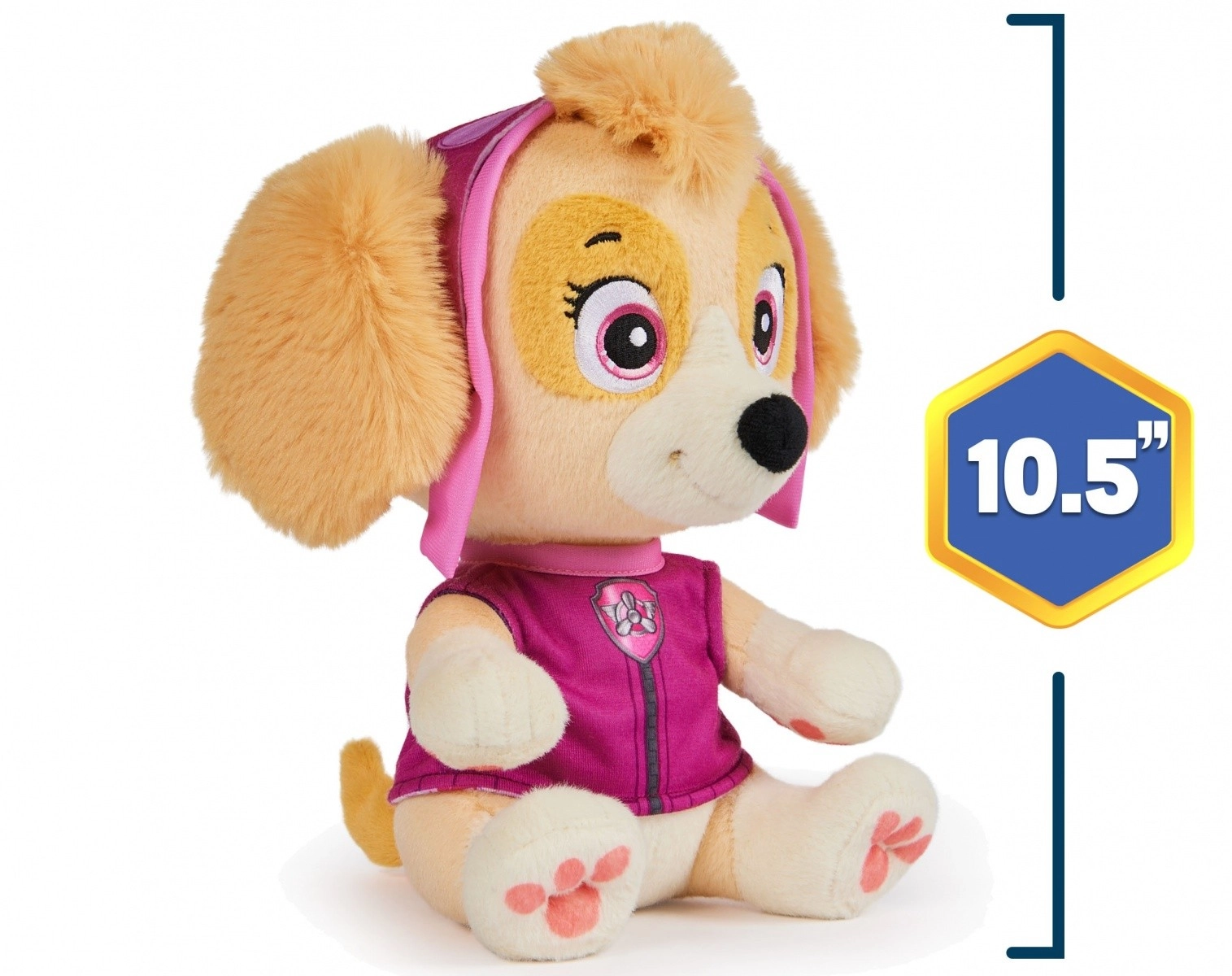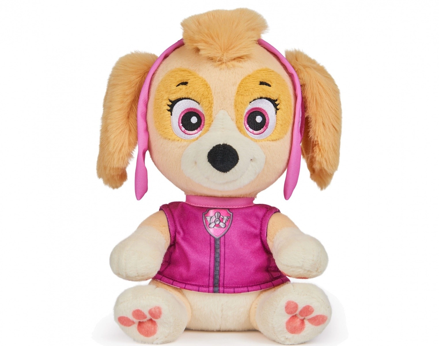 Przynieś do domu miękką towarzyszkę na dobranoc – Skye z uwielbianego serialu Psi Patrol. Ta przytulanka wyróżnia się super miękką powierzchnią, bezpiecznymi haftowanymi detalami i wygodnym rozmiarem do przytulania. Dzięki wiernemu odwzorowaniu Skye wygląda jak w serialu i dzieci pokochają ją od razu.
