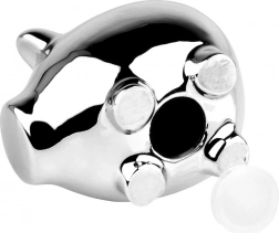 Stylowa srebrna skarbonka w kształcie świnki jest idealna do przechowywania monet i banknotów. Błyszczące, lustrzane wykończenie doda każdemu wnętrzu nowoczesnego charakteru i doskonale wpisze się w elegancki styl glamour. Dolny otwór z korkiem umożliwia wygodne wyjmowanie oszczędności bez konieczności rozbijania skarbonki.