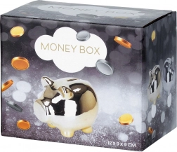 Srebrna ceramiczna skarbonka w kształcie świnki 11,5 × 9 cm