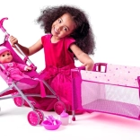 Ten piękny zestaw zawiera wszystko, czego Twoje dziecko potrzebuje do opieki nad swoją ulubioną lalką. Zawiera sportowy wózek z metalową konstrukcją, który jest wyjątkowo praktyczny dzięki łatwej obsłudze. Do zestawu dołączone jest również łóżeczko podróżne, idealne do zabawy w domu i na świeżym powietrzu.