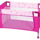 Różowe łóżeczko z metalową ramą jest idealne do zabawy w domu i na zewnątrz. Jest przenośne i lekkie.
