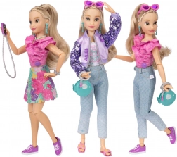 W opakowaniu znajdziesz dwa kompletne stroje i mnóstwo akcesoriów do nieskończonych kombinacji. Od błyszczącej fioletowej kurteczki z rękawami z cekinami, przez kwiecistą spódnicę, po stylowe okulary i torebkę – wszystko utrzymane w morskim stylu.