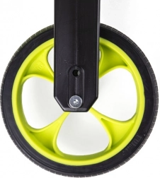 Blokada kierownicy zapobiega przekręceniu widelca, a miękkie gripy z poszerzonymi końcówkami chronią dziecięce dłonie. Pasek ułatwia przenoszenie.