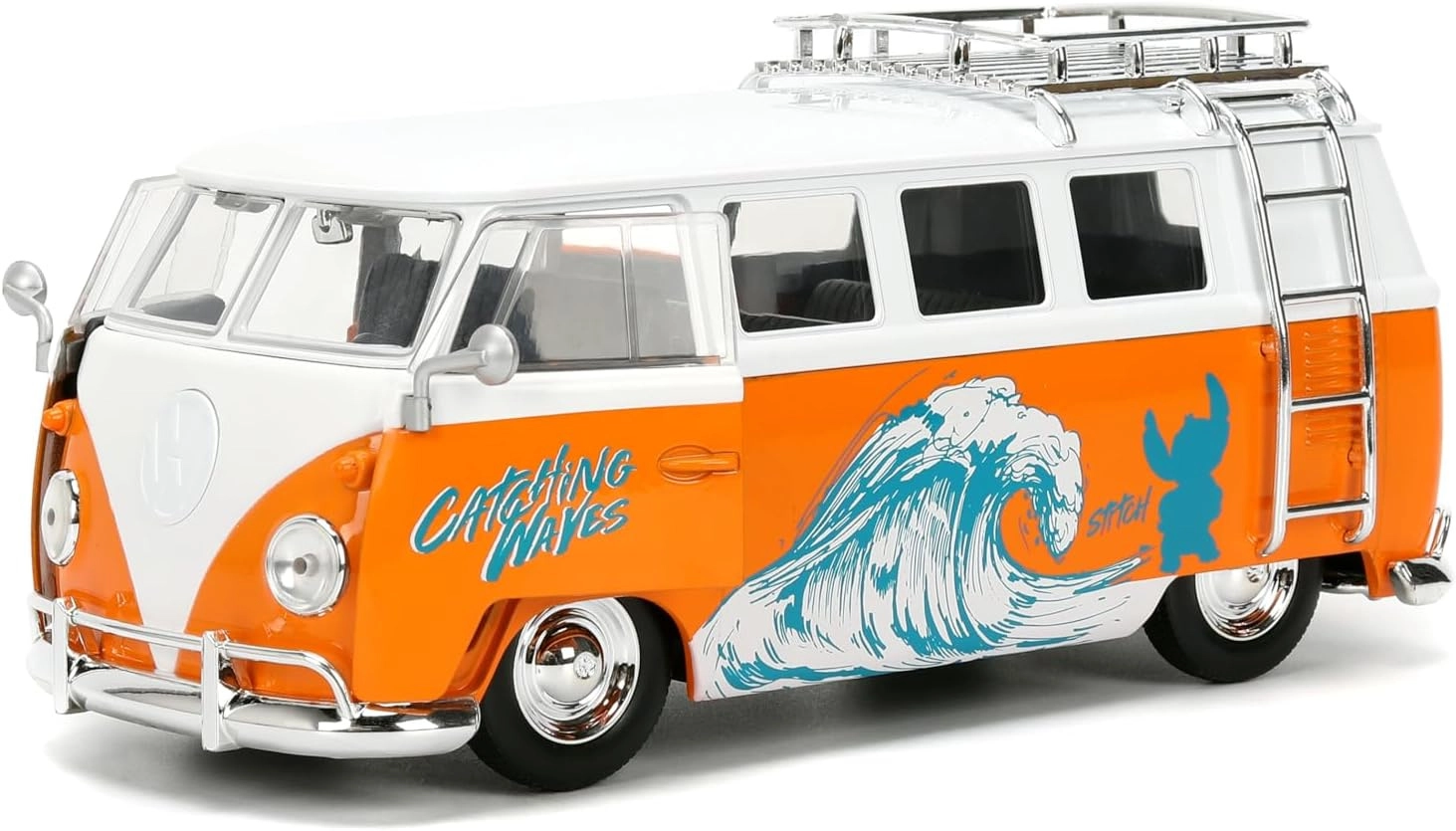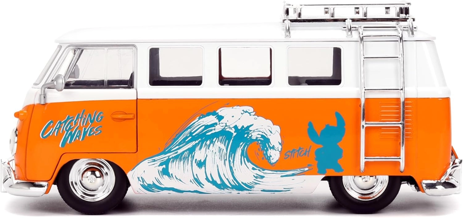 W zestawie 4‑centymetrowa figurka STITCH oraz stylowe nadruki „Catching Waves”, które podkreślają retro charakter pojazdu.