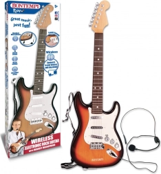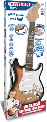 Ta stylowa elektryczna gitara dla dzieci to idealny wybór na pierwsze kroki w świecie muzyki. Oferuje bezprzewodowe połączenie, dzięki czemu dzieci mogą cieszyć się swobodą ruchu podczas gry i śpiewu. W zestawie znajdują się mikrofon z headsetem oraz praktyczny pasek na ramię, aby zapewnić autentyczne koncertowe wrażenia.