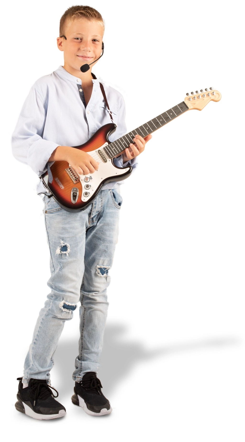 Rozkręć domowe koncerty z tą elektryczną gitarą dla dzieci z bezprzewodowym połączeniem, mikrofonem i headsetem. Dzięki funkcji touch demo dzieci uruchomią przykładowe utwory jednym dotknięciem. W zestawie jest pasek na ramię dla wygodnej gry oraz atrakcyjny design, który motywuje do rozwijania talentu muzycznego i poczucia rytmu.