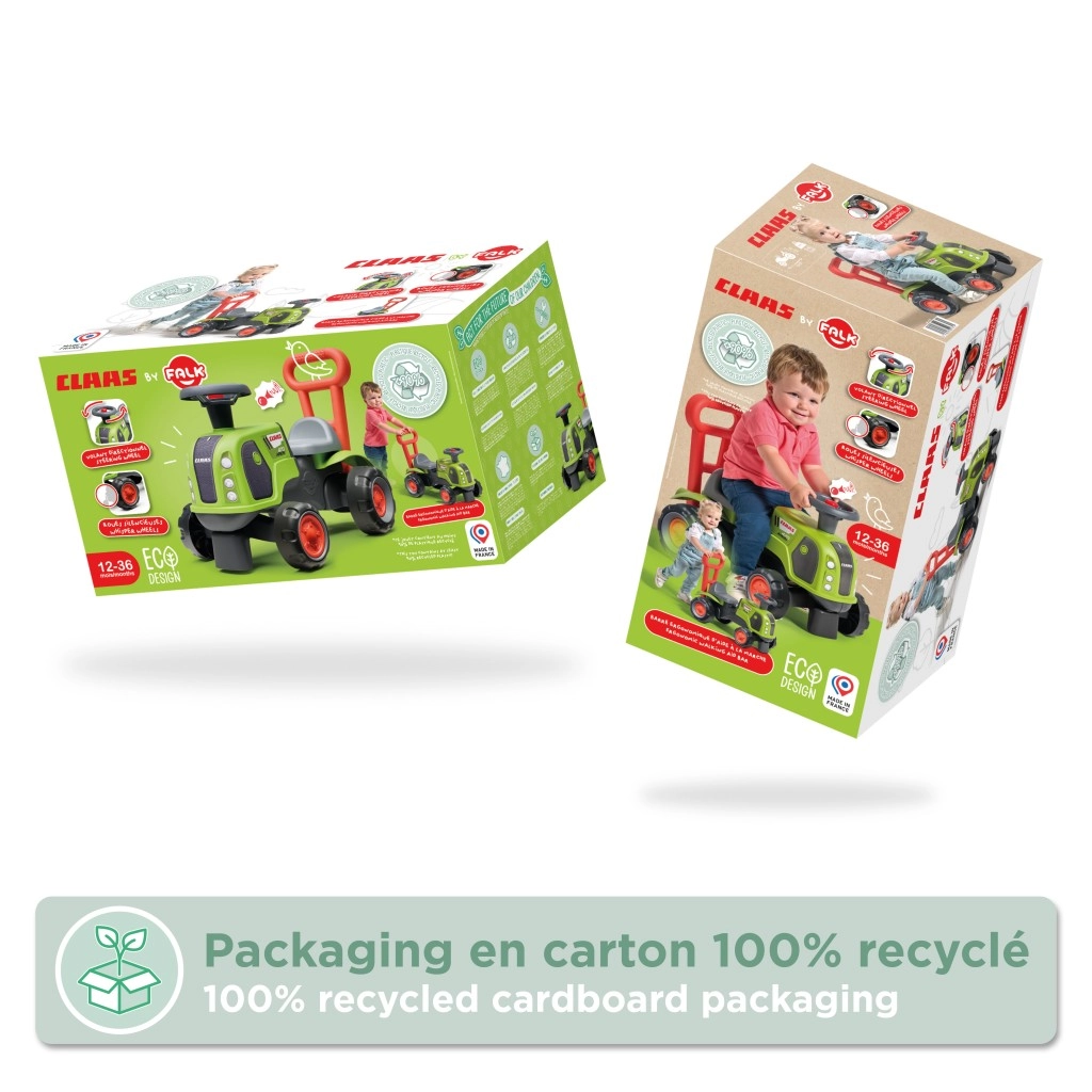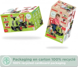 Dziecięcy jeździk traktor CLAAS to świetny wybór dla małych kierowców od 12 miesięcy. Oferuje ciche koła do zabawy w domu i na zewnątrz, kierownicę kierunkową dla łatwego sterowania, klakson dla większej frajdy oraz szerokie, stabilne koła dla bezpiecznej jazdy. Wyprodukowany we Francji z wysokiej jakości tworzyw z recyklingu, o nośności 25 kg.