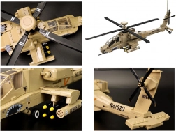 Ta techniczna konstrukcja inspirowana legendarną maszyną AH‑64 oferuje szczegółowy model z typowym kształtem kadłuba, podwieszanym uzbrojeniem i efektowną grafiką w stylu „shark mouth”. Obrotowy główny i ogonowy wirnik oraz przejrzysta osłona kabiny podkreślają realistyczny wygląd i funkcjonalność do ekspozycji i dynamicznych scenek.
