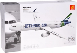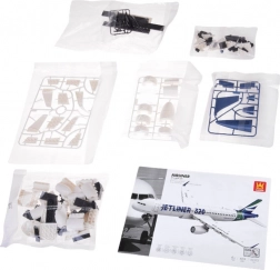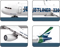 Elegancka biała kolorystyka z niebieskimi i zielonymi akcentami oraz dołączone naklejki nadają JETLINER 320 autentyczny wygląd do ekspozycji i zabawy.