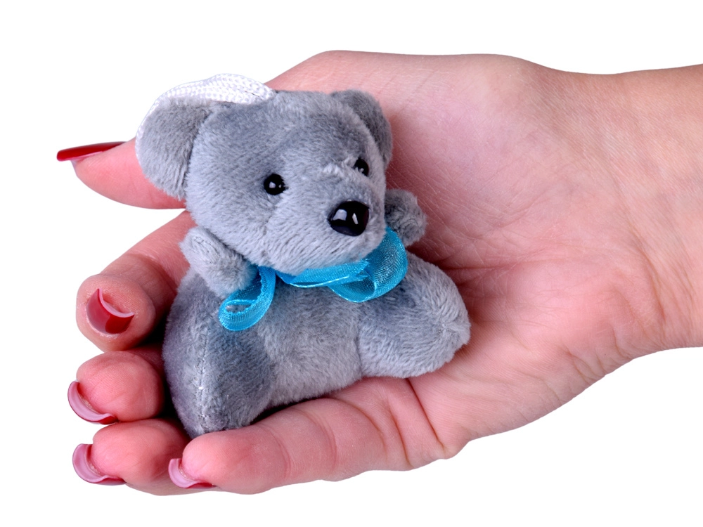 Mini rozmiar około 6 × 6 × 4 cm pasuje do dziecięcej dłoni, a delikatny plusz zapewnia miękki dotyk i bezpieczną zabawę.