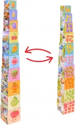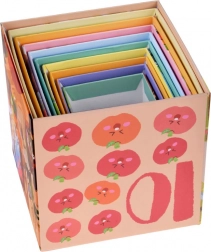 Klocki można ustawiać jeden na drugim w wysoką wieżę lub wkładać jeden w drugi dla oszczędności miejsca. Idealne do ćwiczenia małej motoryki i koordynacji.