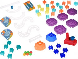 W zestawie znajduje się manualna wyrzutnia dla dynamicznego startu, krzywizny, lejki i elementy łączące w żywych kolorach, zachęcające do zabawy. Zestaw wspiera koordynację ręka–oko, myślenie techniczne i kreatywność całej rodziny.