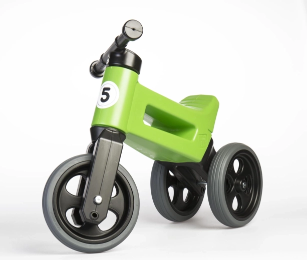 Lekki i wytrzymały jeździk Funny Wheels Rider Sport 2w1 rośnie razem z dzieckiem: w kilka chwil przekształcisz go z trójkołowego w dwukołowy, oferuje dwie wysokości siodełka, ciche, antypoślizgowe opony oraz bezpieczną konstrukcję dla małych jeźdźców od 18 miesięcy.