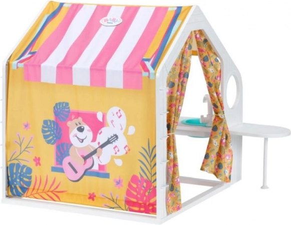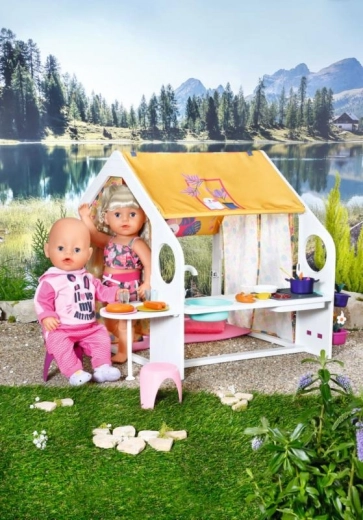 Weekendowy domek dla lalek BABY born to świetny sposób na zabawę w glamping. Dzięki żółtym bocznym ścianom, które można otworzyć, zyskasz dużo miejsca na wszelkie aktywności.