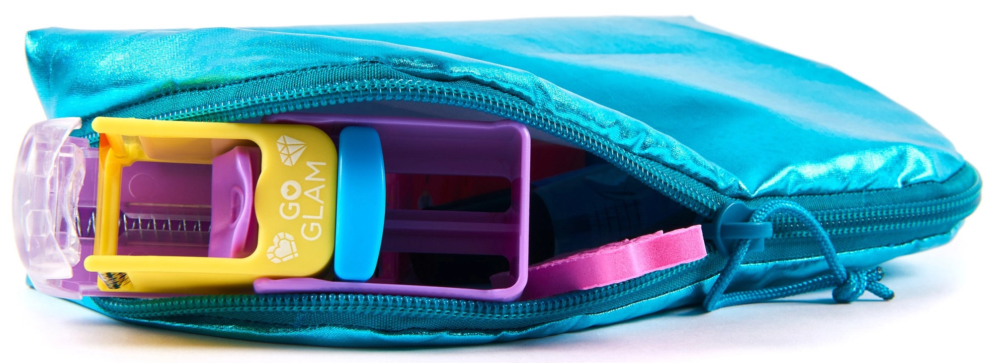 Błyszcząca kosmetyczka na zamek pomieści lakiery, kasety i stempel w jednym miejscu. Idealna do przenoszenia i bezpiecznego przechowywania całego zestawu.