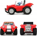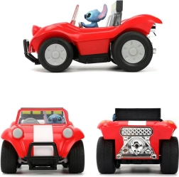 Czerwone nadwozie z białym pasem, duże koła z głębokim bieżnikiem oraz wbudowana figurka STITCHA dla jeszcze większej frajdy.