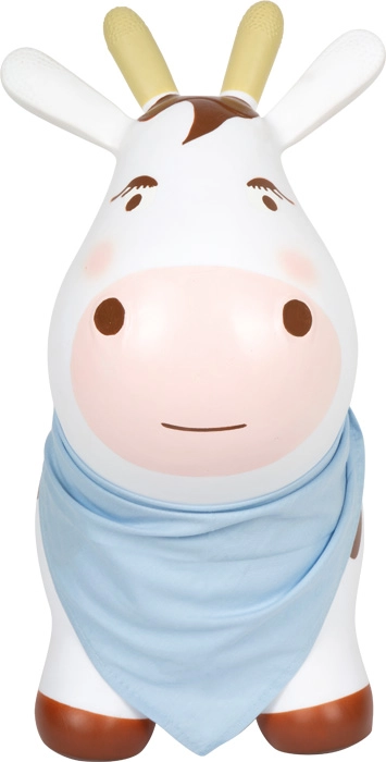 Dmuchana skacząca krówka to zabawna, a zarazem praktyczna zabawka wspierająca rozwój dużej motoryki. Dzieci pokochają jej miły design z niebieskim szalikiem, a rodzice docenią łatwą pielęgnację i szybkie pompowanie za pomocą dołączonej pompki. Skoczek pomaga wzmacniać mięśnie pleców, tułowia i nóg, a przy tym naturalnie trenuje równowagę i koordynację.