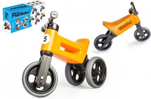 Lekkie odrážedlo FUNNY WHEELS Rider Sport 2v1 rośnie razem z dzieckiem dzięki łatwej zmianie z trójkołowego na dwukołowe wykonanie. Oferuje regulowaną wysokość siodełka 28/30 cm, ciche, miękkie koła odporne na przebicie oraz bezpieczne ograniczenie skrętu kierownicy. Idealne dla dzieci od 18 miesięcy o udźwigu 25 kg, wykonane z bezpiecznego plastiku w Czechach.
