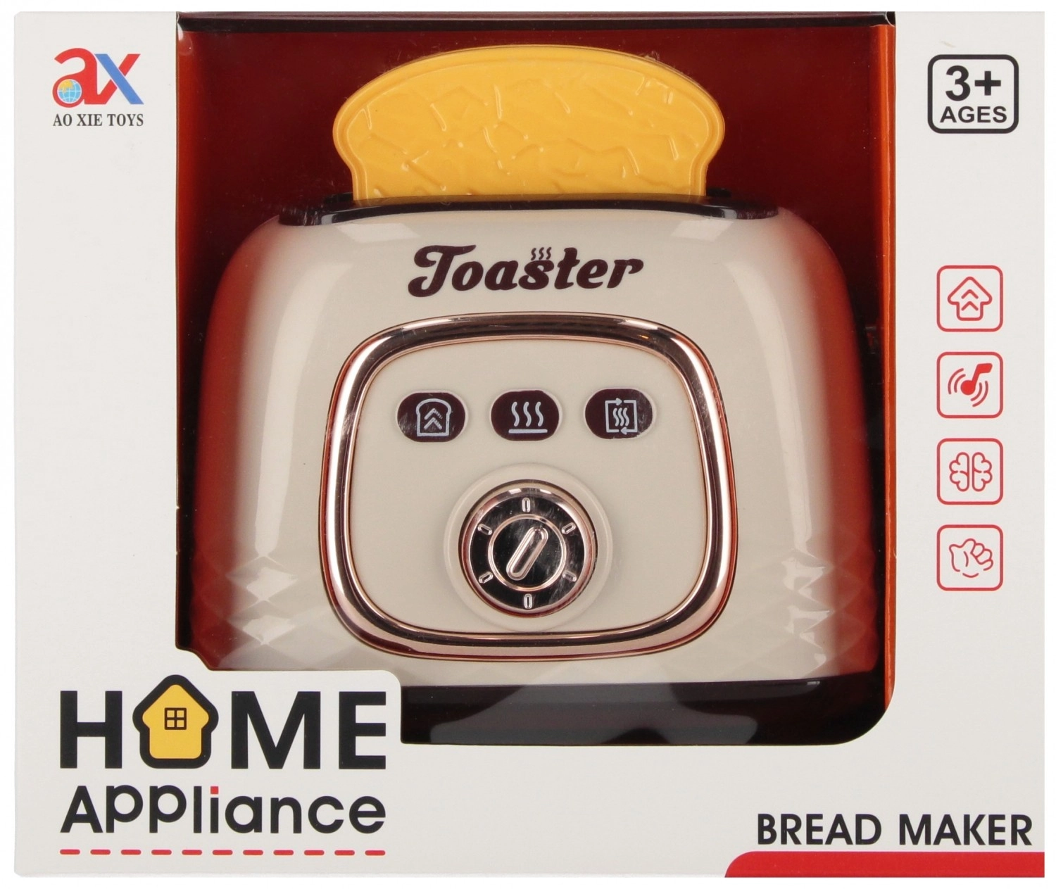 Ożyw dziecięcą kuchnię zabawkowym tosterem, który realistycznie naśladuje przygotowywanie tostów. Po naciśnięciu przycisku tosty same wysuwają się dzięki sprężynie, a efekty dźwiękowe dodają zabawie autentyczności. Idealny dla małych kucharzy i kucharek.