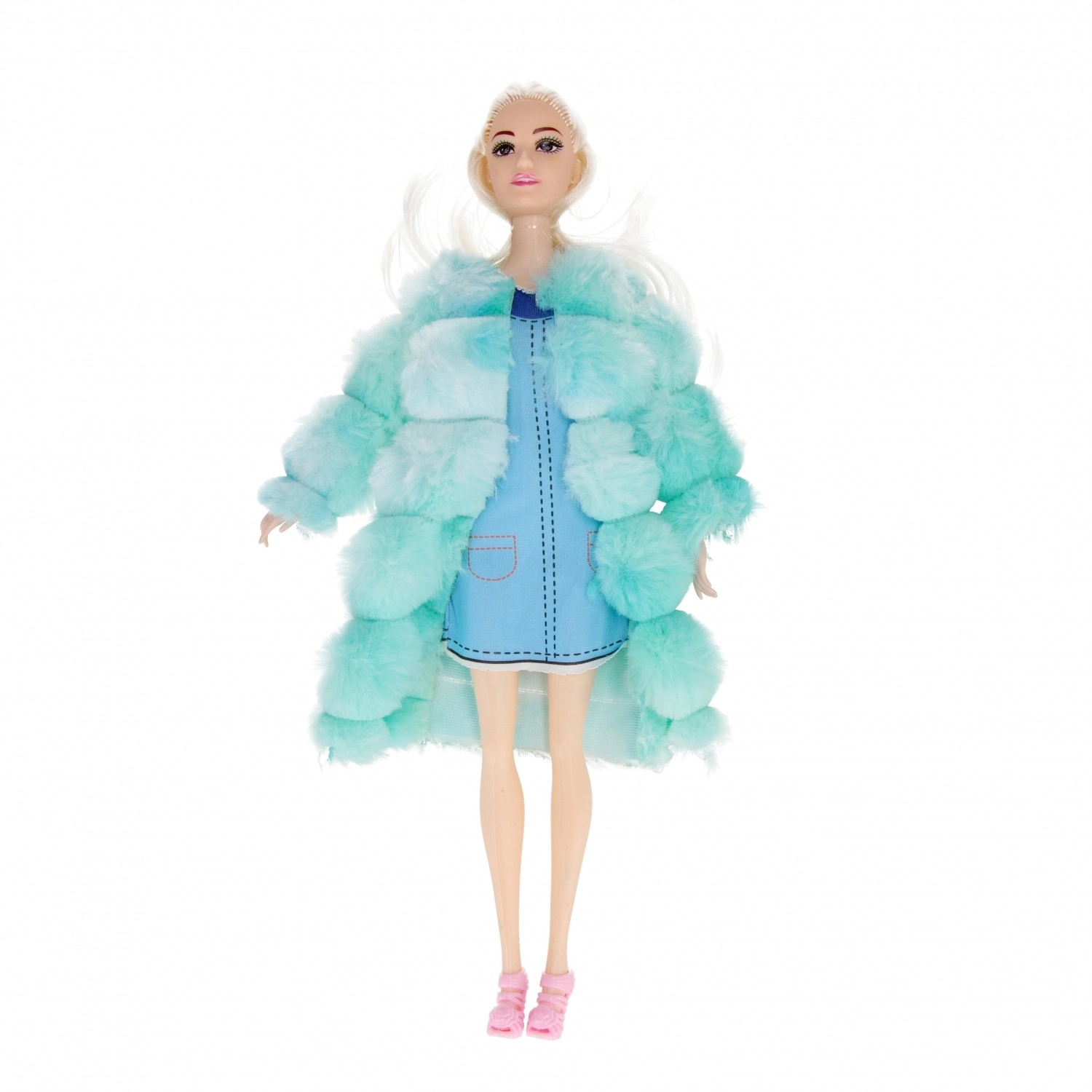 Modny futerkowy płaszczyk wyróżnia się na każdej lalce i nadaje jej trendowy wygląd, który dzieci lubią łączyć z sukienkami i bucikami.