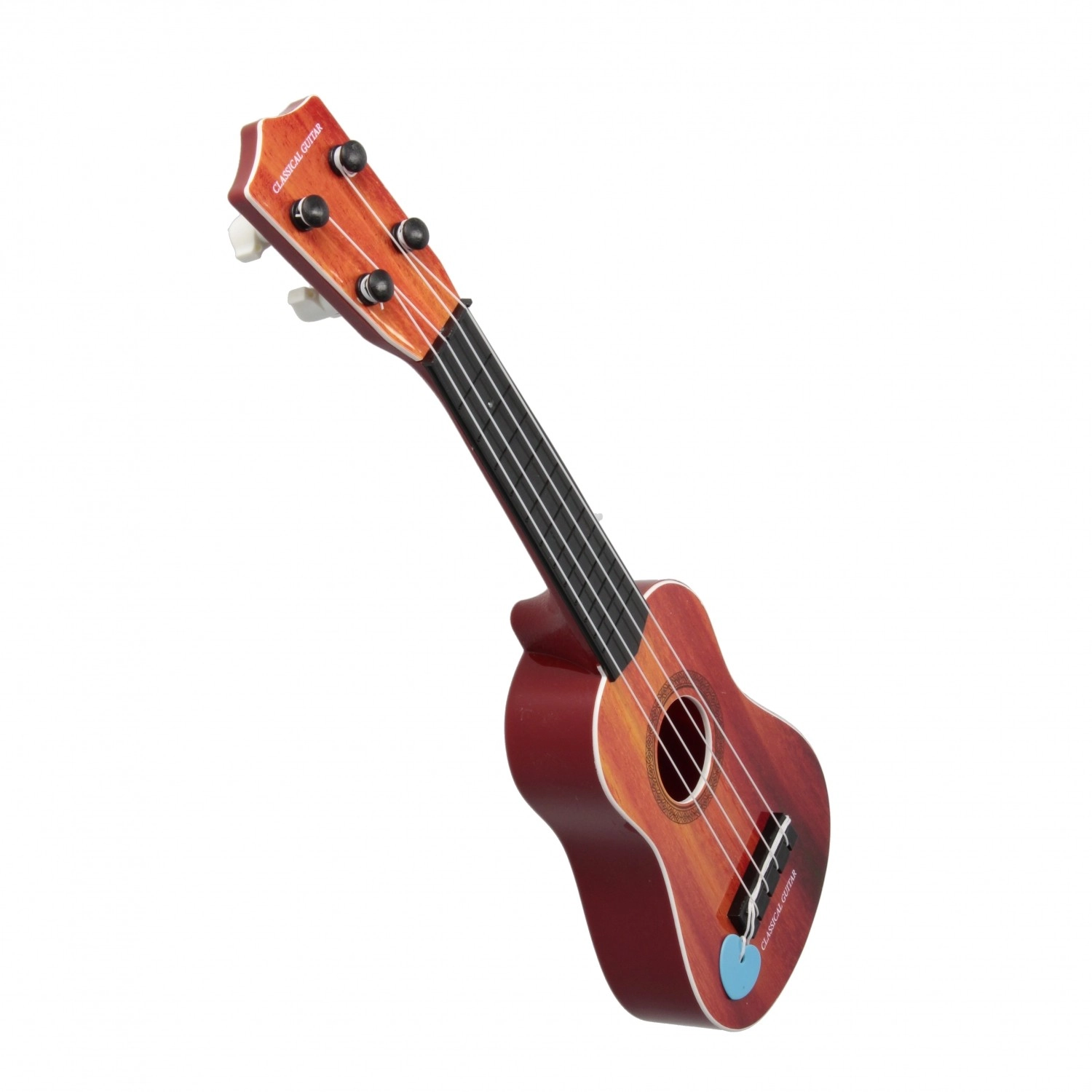 Ta dziecięca gitara to świetny wybór na pierwsze spotkanie z muzyką. Dzięki kompaktowym wymiarom wygodnie leży w dziecięcych dłoniach i umożliwia podstawowy trening rytmu oraz prostych melodii. Strojenie działa podobnie jak w prawdziwych gitarach, więc dzieci od samego początku uczą się właściwych nawyków.