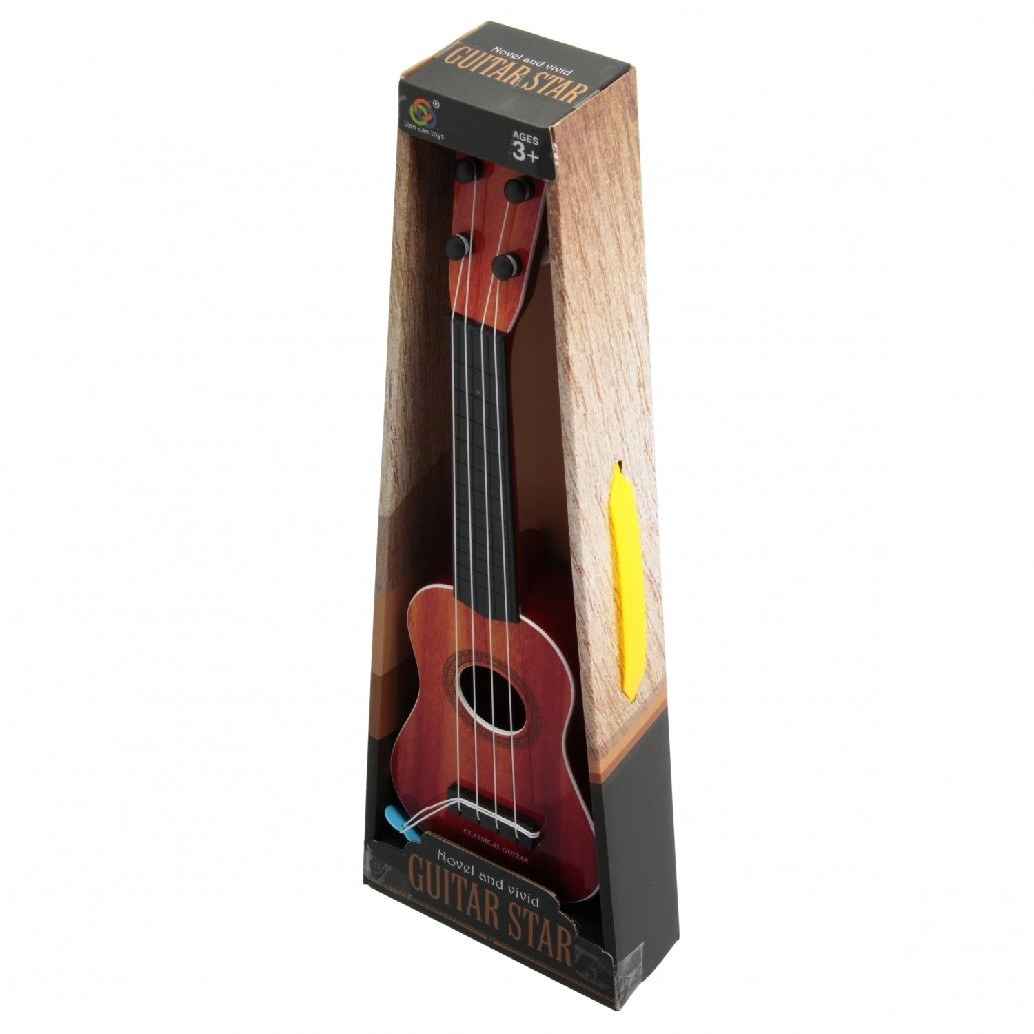 Rozbudź dziecięcą wyobraźnię dzięki tej dziecięcej gitarze, która pozwoli małym muzykom poczuć się jak prawdziwe gwiazdy. Można ją stroić podobnie jak prawdziwy instrument, rozwija koncentrację, poczucie rytmu i słuch muzyczny. Wytrzymała konstrukcja z plastiku z metalowymi strunami jest idealna dla dzieci od 3 lat.