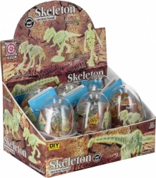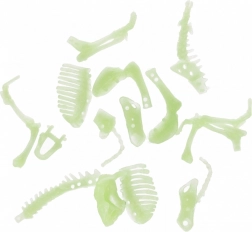 Drobne komponenty z twardego plastiku są uformowane w realistyczne kości – od czaszki, przez kręgosłup, aż po kończyny. Po naświetleniu szkielet efektownie świeci w ciemności, co dodaje tajemniczego klimatu i pobudza dziecięcą wyobraźnię. Idealny jako prezent, do kolekcji i jako pomysłowa dekoracja do pokoju dziecka.