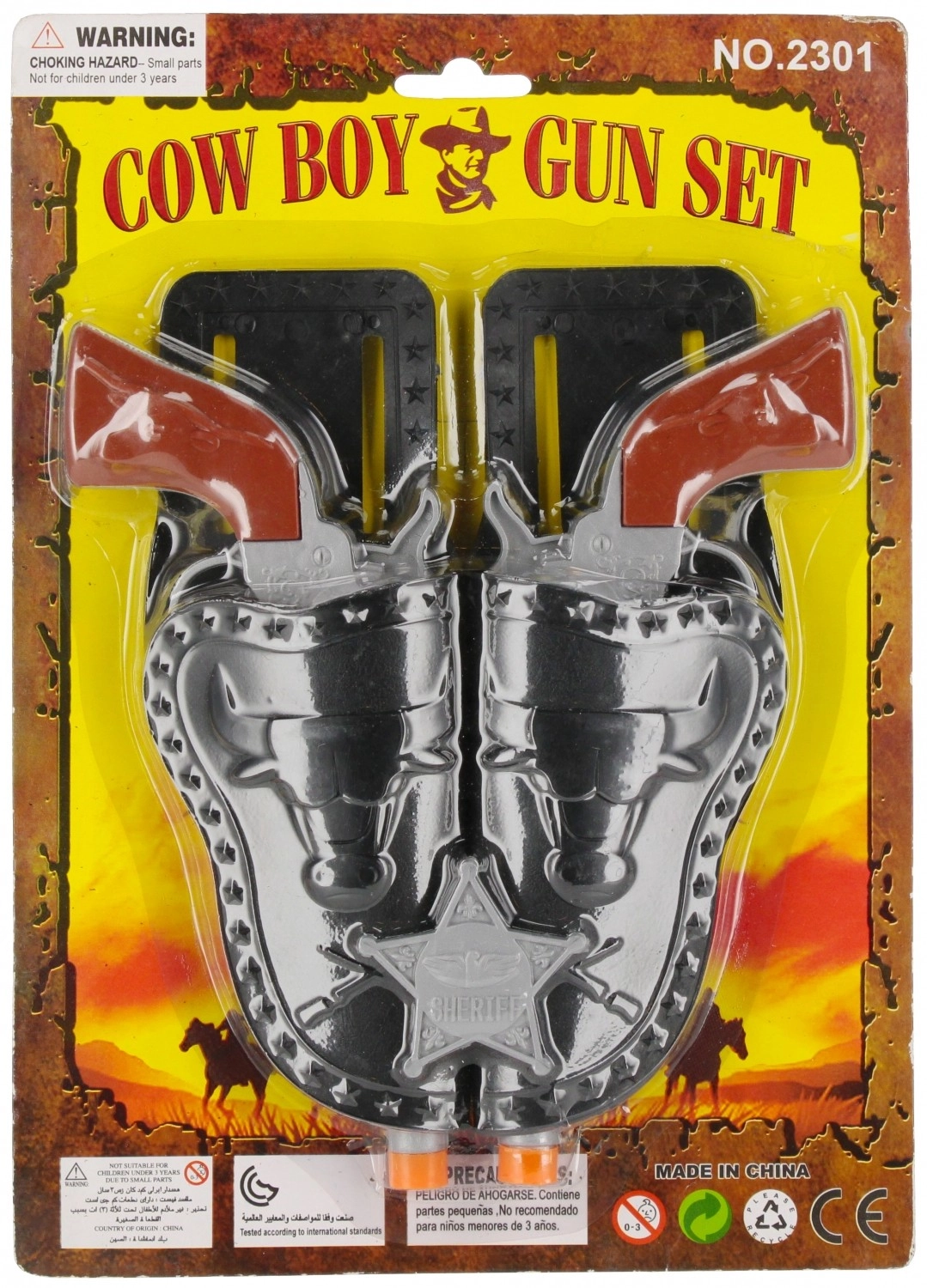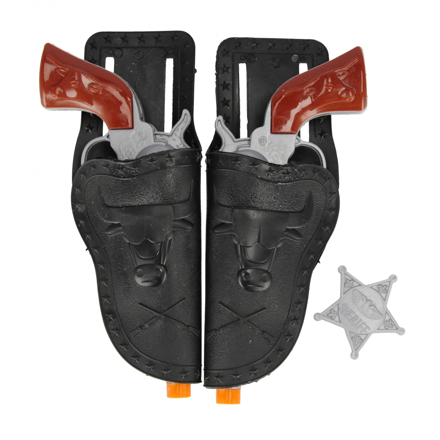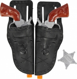 - Kompletne wyposażenie: 2 pistolety, 2 kabury, gwiazda szeryfa