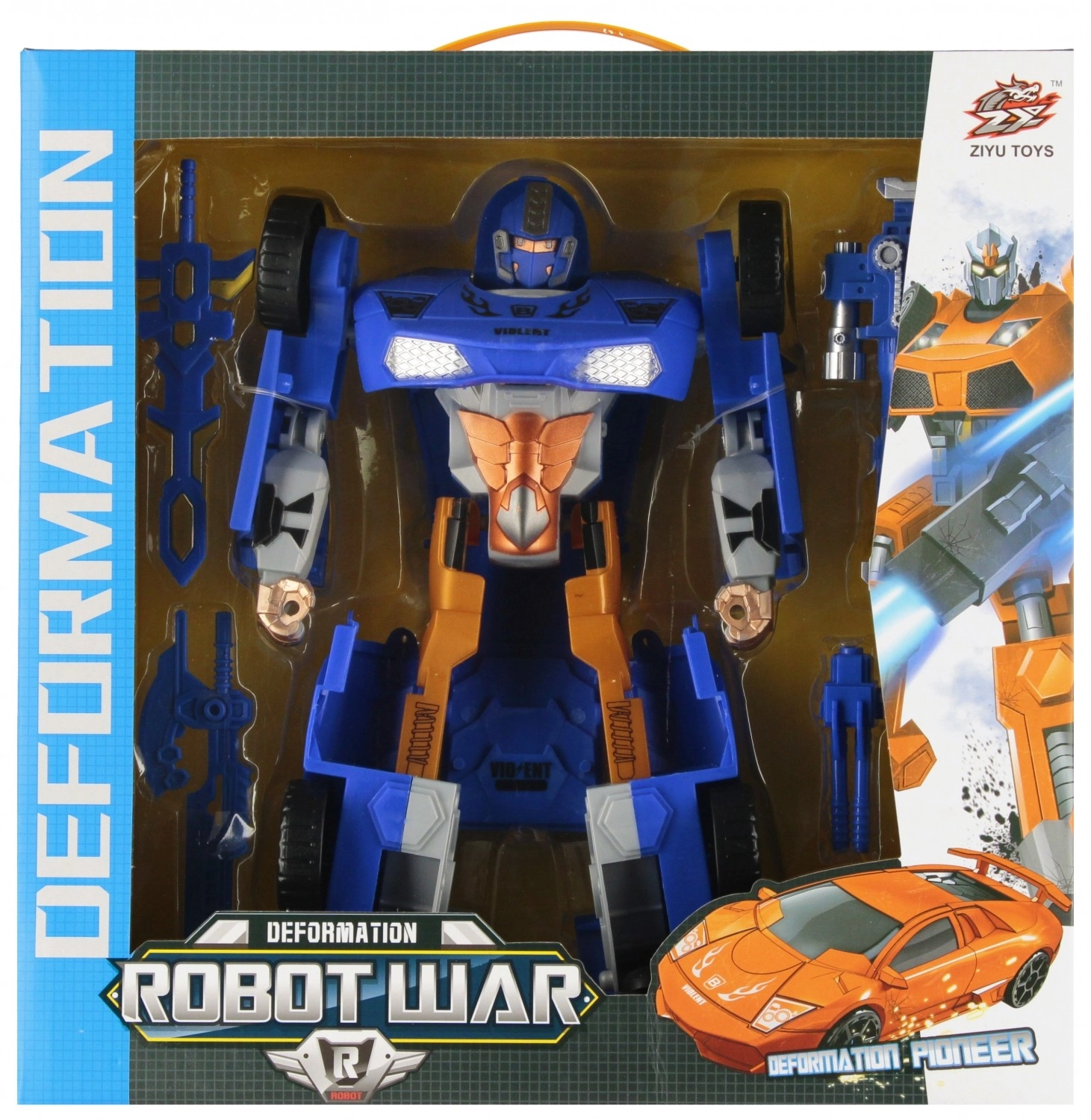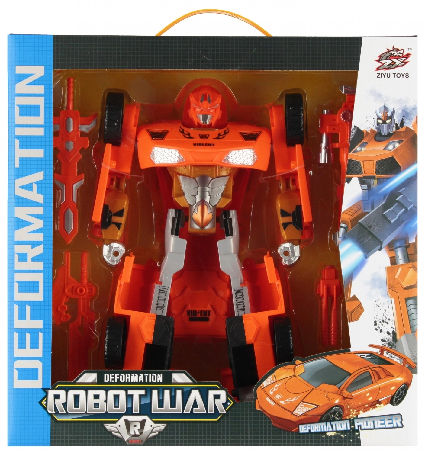 Zabawka 2 w 1: transformujący robot, który w kilku ruchach zmienia się w samochód osobowy. Daje dzieciom nieskończoną zabawę, rozwija wyobraźnię, kreatywność i motorykę małą. Dostępna w dwóch wersjach kolorystycznych – pomarańczowej i niebieskiej. Odpowiednia od 3 lat. Cena za jedną sztukę.