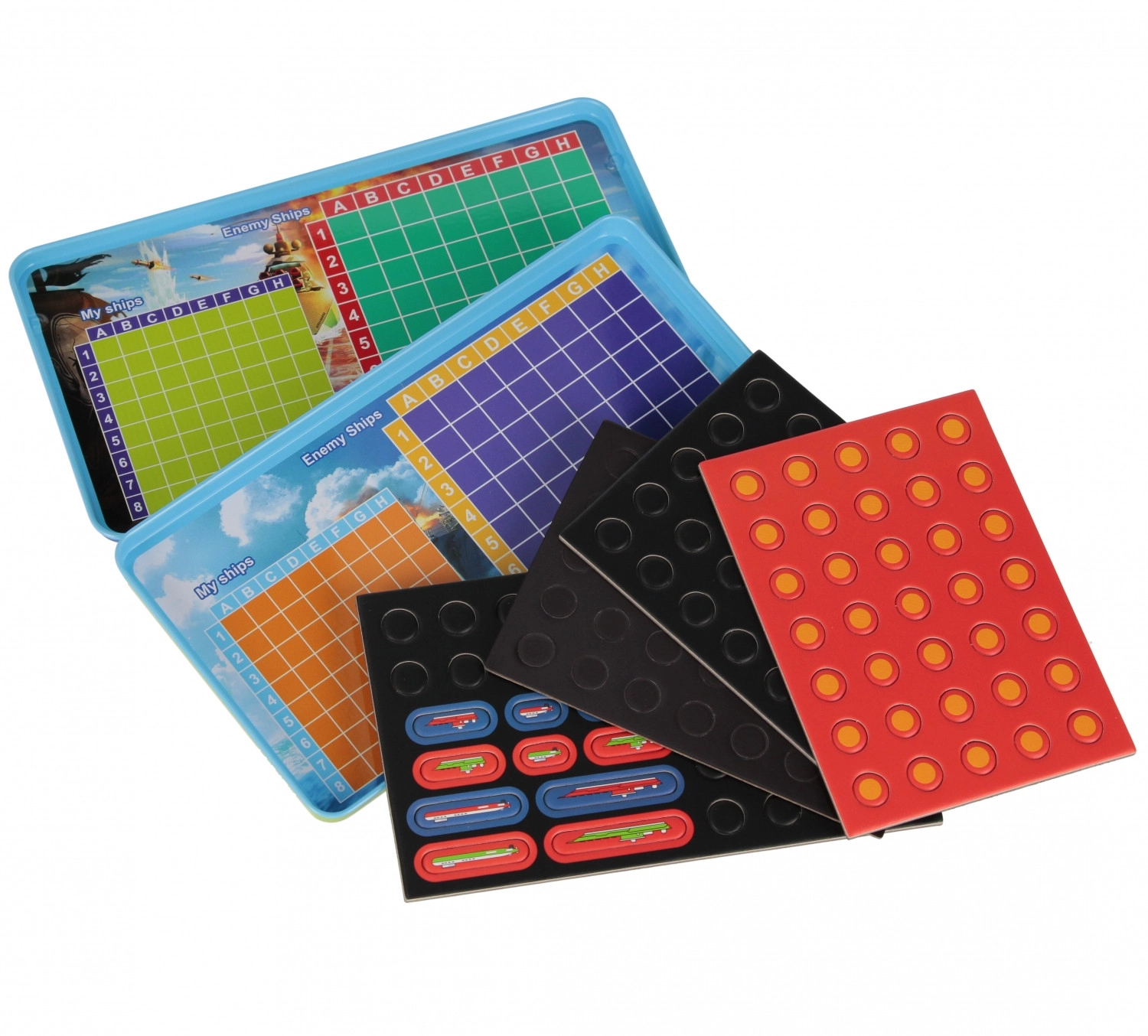 Zestaw zawiera wszystko dla dwóch flot i natychmiastowego startu gry: dwie plansze, arkusze z żetonami i statki. Proste zasady opanują nawet młodsi gracze, podczas gdy starsi docenią taktykę i przemyślane ataki.