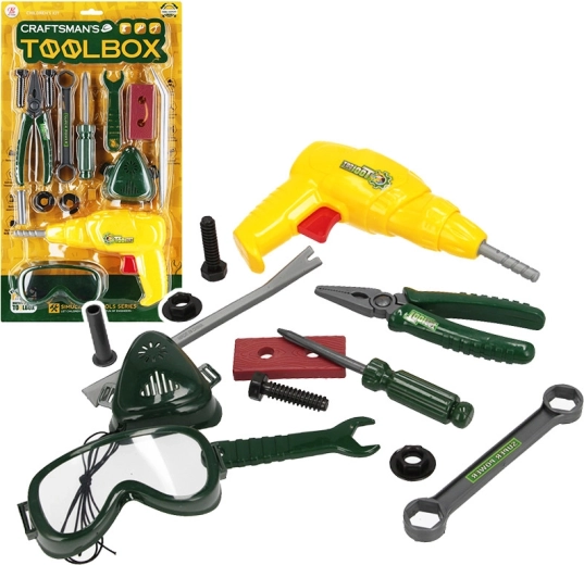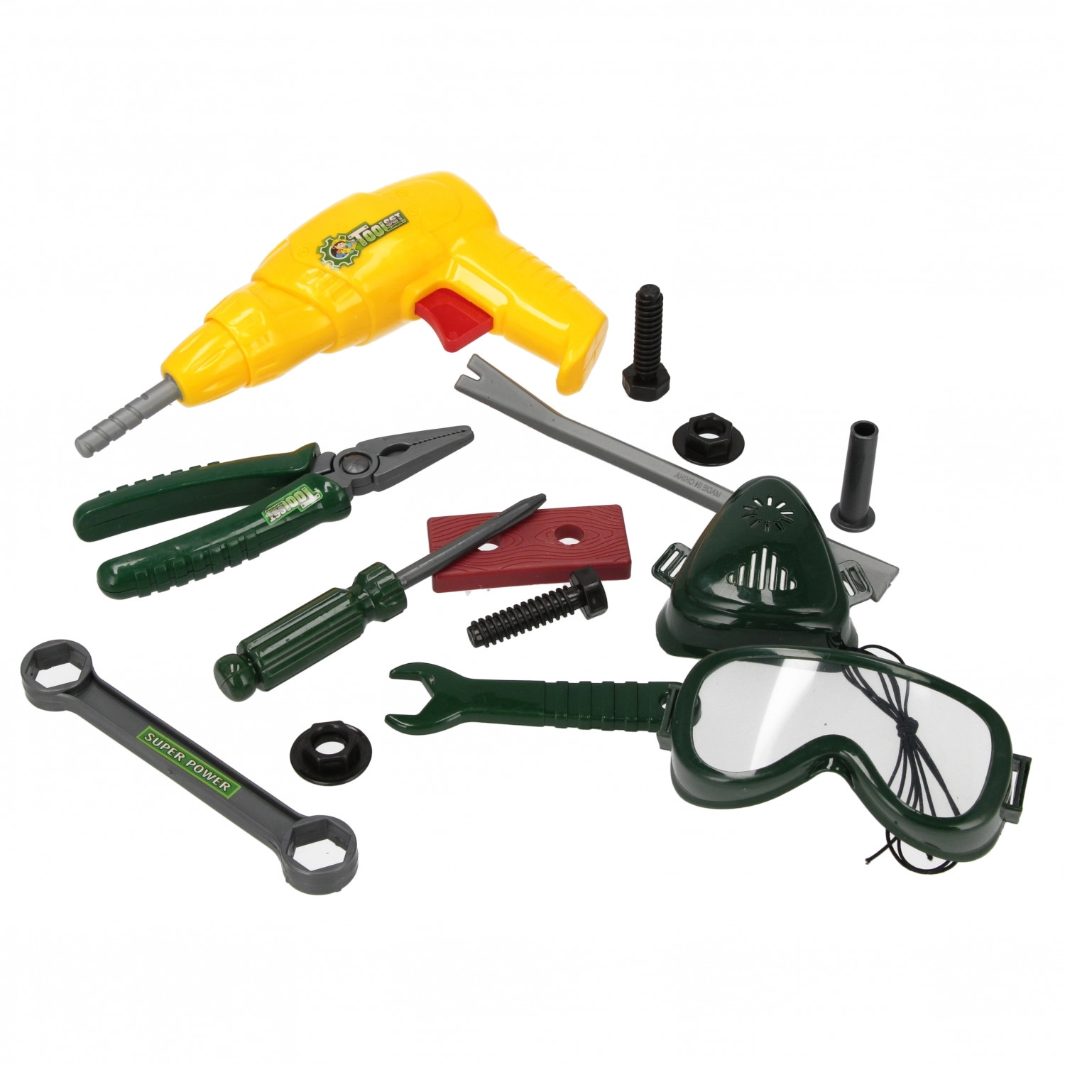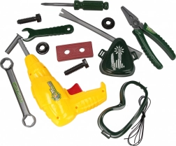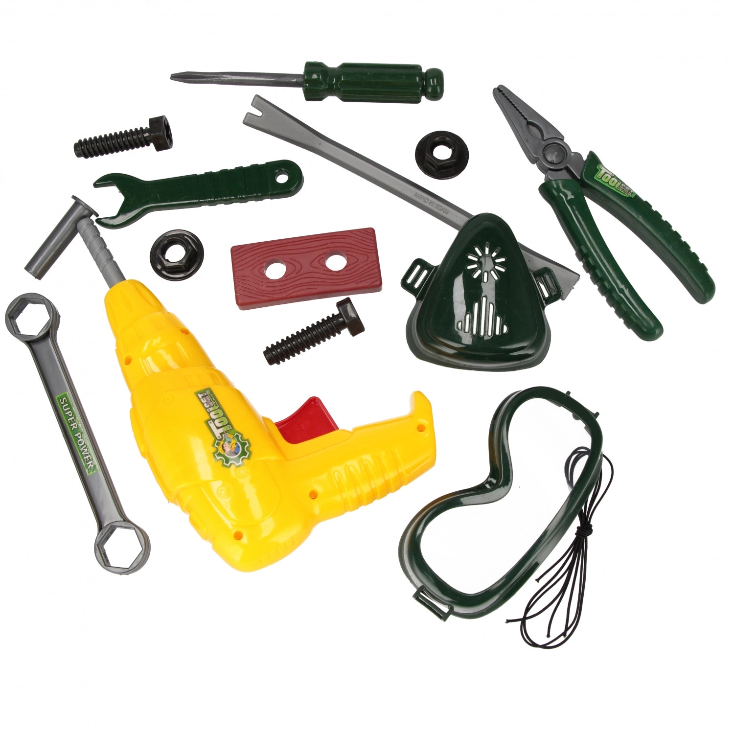 W zestawie znajdują się: młotek, śrubokręt z 2 końcówkami, gogle ochronne, maska, siekiera, klucz, 2 deski, 2 śruby i nasadki. Zestaw zaprojektowano z myślą o małych dłoniach – jest lekki, łatwy w obsłudze i idealny do zabawy w domu oraz w podróży.