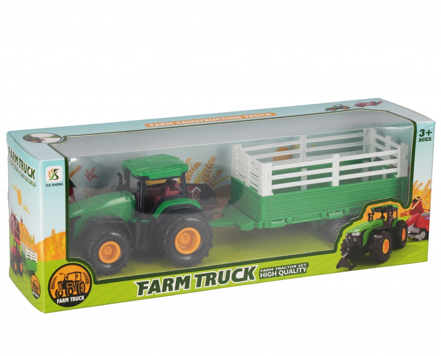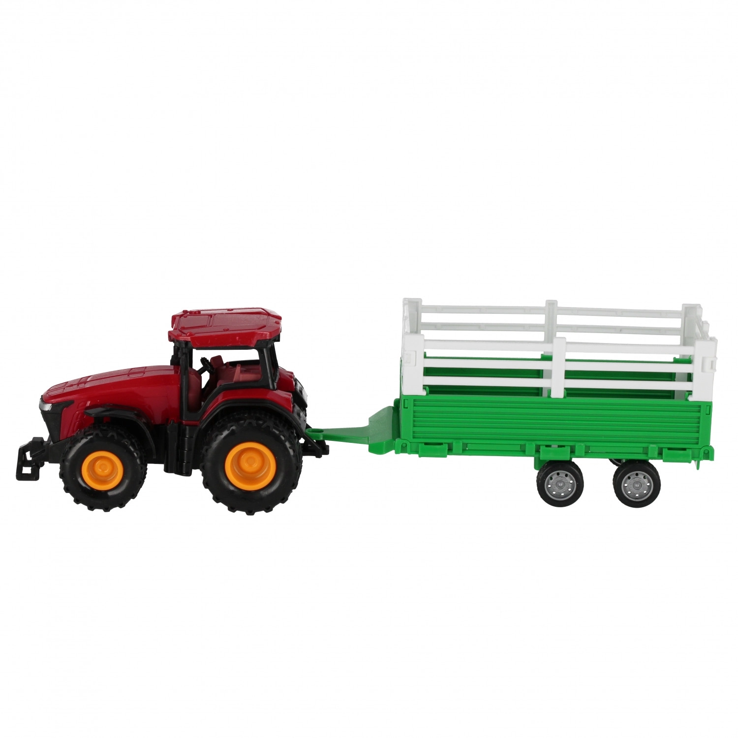 Zabawny zestaw rolniczy dla małych kierowców – traktor z odłączaną przyczepą i funkcją pull-back. Wystarczy naciągnąć do tyłu, a traktor ruszy sam. Realistyczne detale, toczące się koła i przyczepa do przewożenia ładunku. Wymiary ok. 33 × 12 × 9 cm, odpowiedni dla dzieci od 3 lat.
