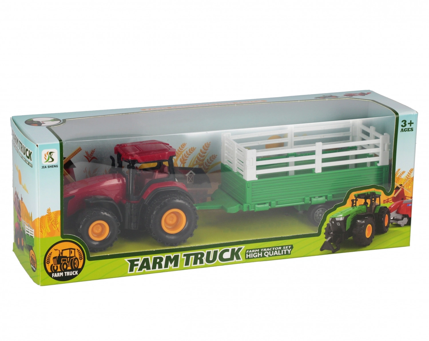 Odkryj zabawę na farmie z zabawką, która rozwija wyobraźnię i małą motorykę. Traktor z odłączaną przyczepą oferuje realistyczne wykonanie, swobodnie obracające się koła i lubiany mechanizm pull-back – naciągnij do tyłu, puść i obserwuj jazdę do przodu.