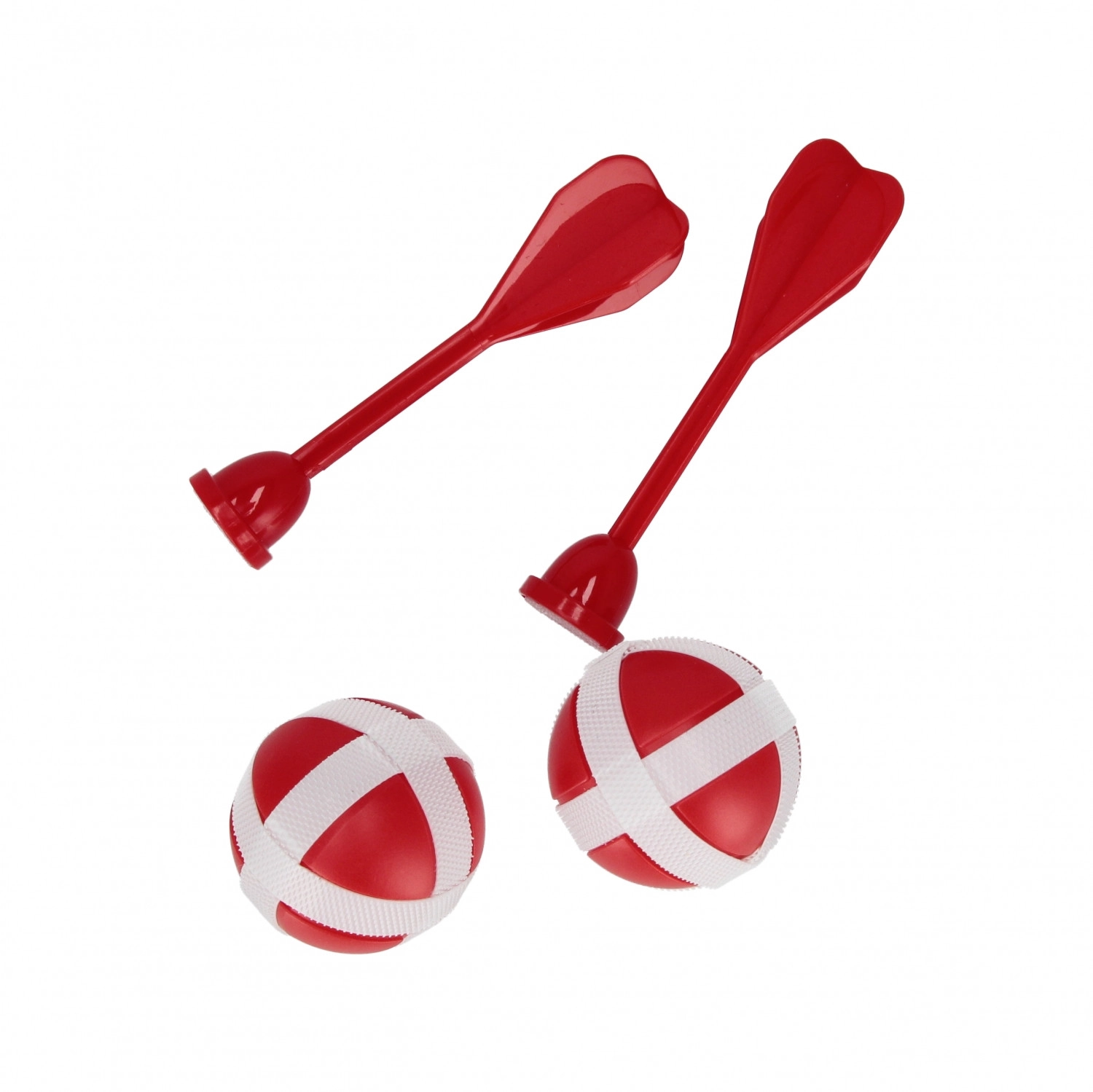 Dwie plastikowe rzutki i dwie piłeczki pewnie przyczepiają się do tarczy, bez ryzyka zranienia czy uszkodzenia mebli.